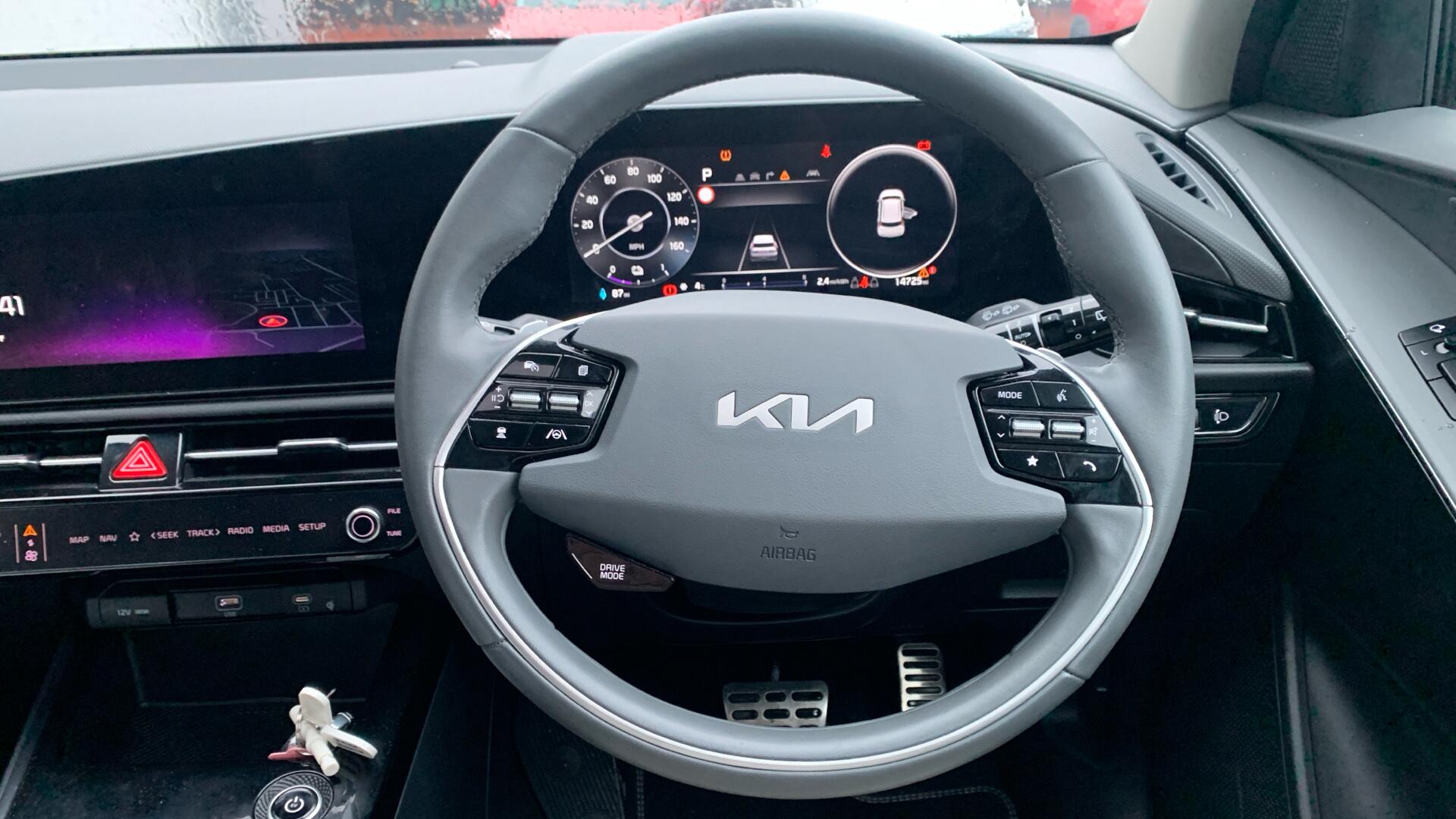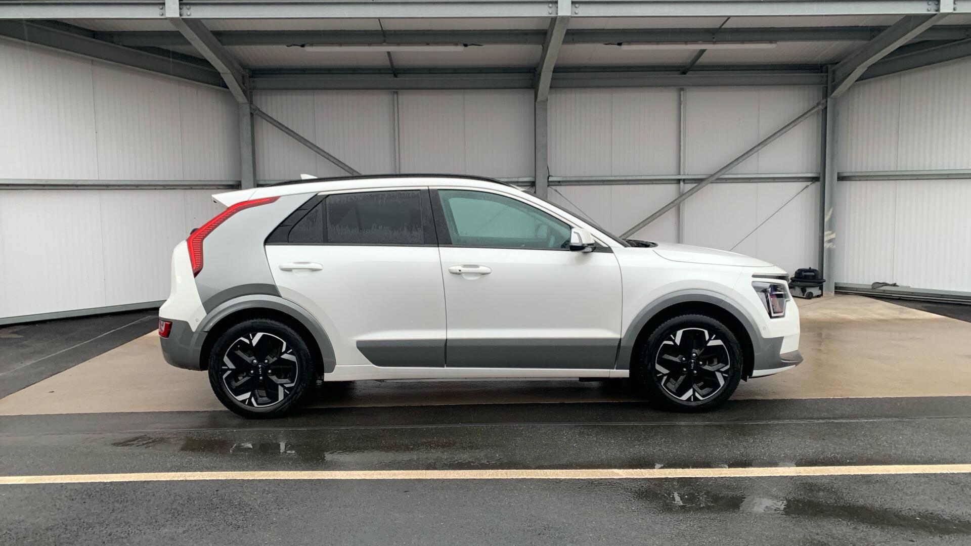 The Kia Niro, a 2022 model, is a 4-door variant of the 4 trim level, boasting an electric powertrain. With a total battery capacity of 68 kWh, this eco-friendly vehicle offers a maximum range of 285 miles on a single charge. When it's time to recharge, you can do so at home with a 7kW charger, which will take approximately 9 hours and 25 minutes to fully top up the battery. Alternatively, you can take advantage of fast public charging, which can get you to 80% in just 43 minutes. This Kia Niro is equipped with a range of convenient features, including a tilting and sliding power sunroof, adaptive smart cruise control with stop and go functionality, rear and front parking sensors, and a driver's power-adjusted memory seat.One of the standout features of this Kia Niro is its impressive boot space, making it an ideal choice for families or those who need to transport bulky items. With a very low mileage of just 14,725 miles for its age, this vehicle has been well cared for and is ready for its next owner. The battery's maximum range of 285 miles is a significant advantage over other similar electric vehicles, giving you the freedom to go further without needing to recharge. Whether you're commuting to work or embarking on a longer journey, the Kia Niro is a reliable and practical choice that's sure to meet your needs.